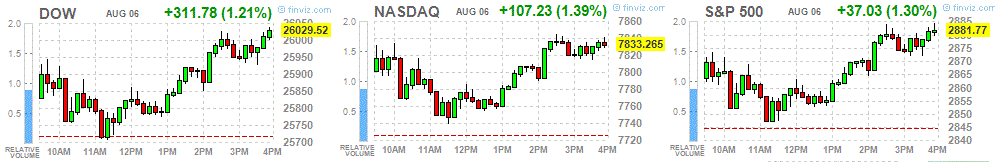 Dow | 26,029.52 | +311.78 | +1.21% |