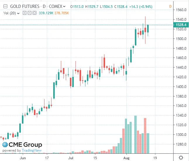 "Геополитика также остается в центре внимания рынка, что поддерживает золото", - написал в записке Джим Уайкофф, старший аналитик Kitco Metals, добавив, что "гражданские беспорядки в Гонконге остаются в фокусе внимания трейдеров и инвесторов по всему миру".