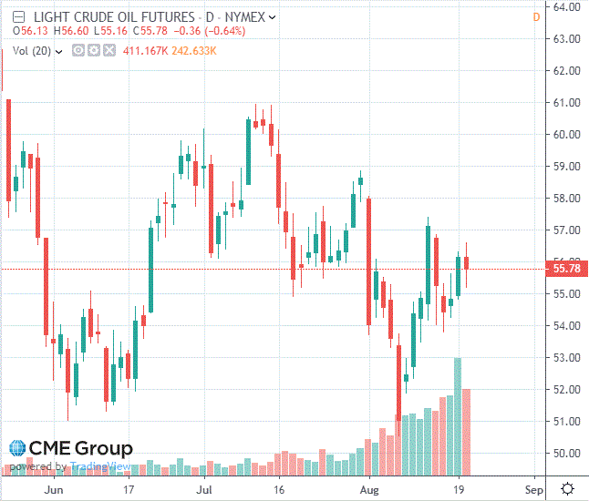 Стоимость октябрьского фьючерса на американскую легкую нефть марки WTI (Light Sweet Crude Oil) упала до 55,78 доллара за баррель на Нью-йоркской товарно-сырьевой бирже.