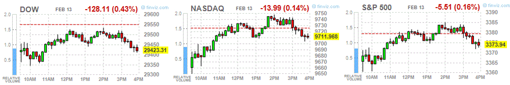 Основные фондовые индексы США немного снизились, так как инвесторы пытались справиться с беспокойствами по поводу негативного влияния коронавируса на глобальную экономику, усилившимися после неожиданного ускорения темпов распространения этого вируса в Китае.