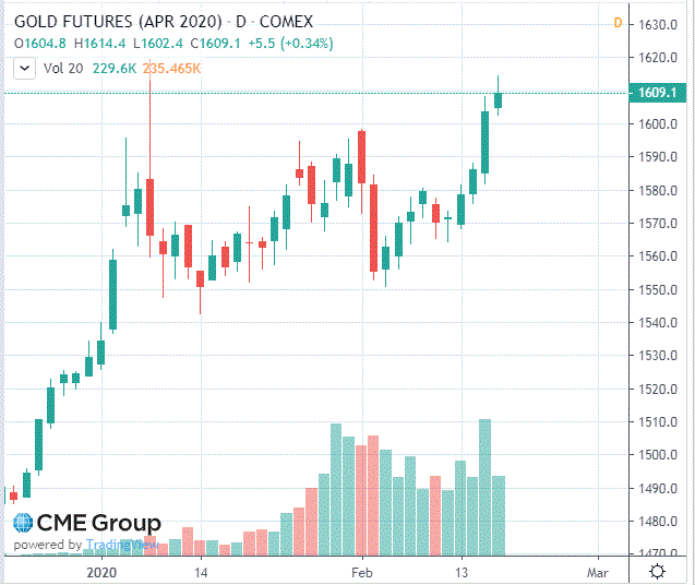 Золото удерживало свои позиции даже тогда, когда европейские акции достигли нового рекордного максимума на фоне снижения числа новых случаев коронавируса в Китае, а доллар вырос до более чем четырехмесячного максимума против конкурентов.